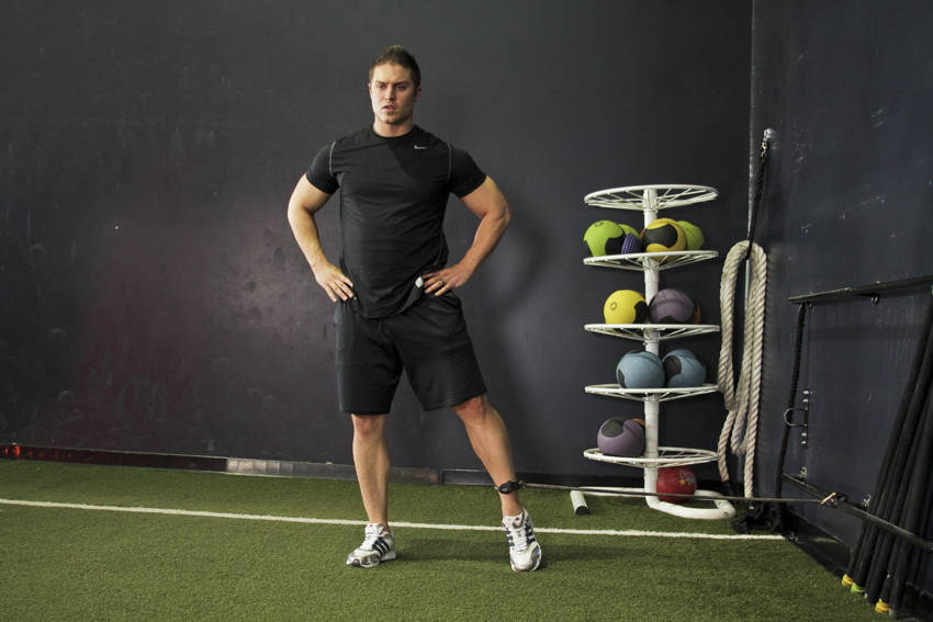 - Stand up straight and hold onto the post if needed. This will be your starting position.